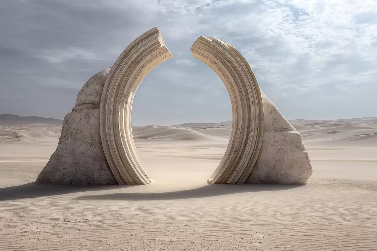 Fototapet surrealistiskt ökenlandskap med en stor arkitektonisk båge Nr. w04284