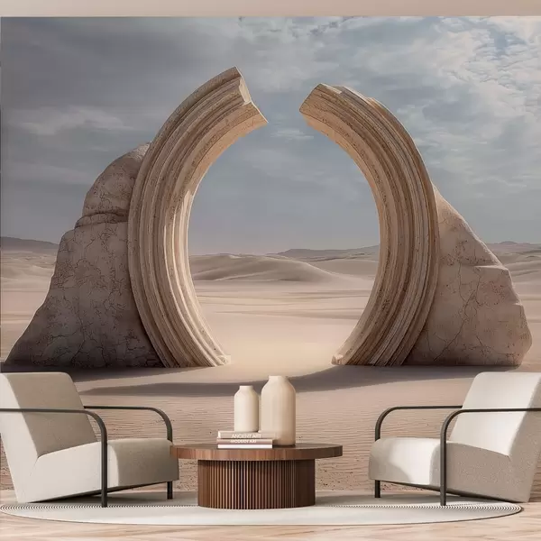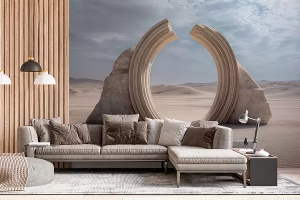 Fototapet surrealistiskt ökenlandskap med en stor arkitektonisk båge Nr. w04284