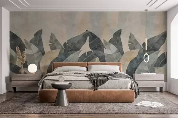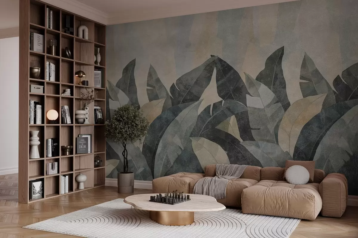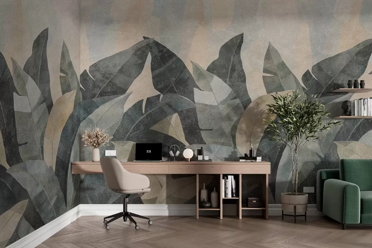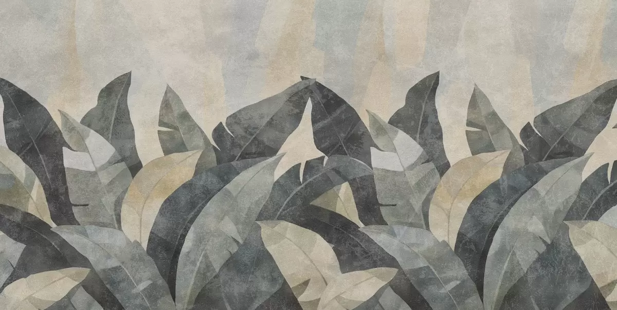 Fototapet texturerade bananblad i naturliga nyanser av beige, grönt och grått Nr. w04285