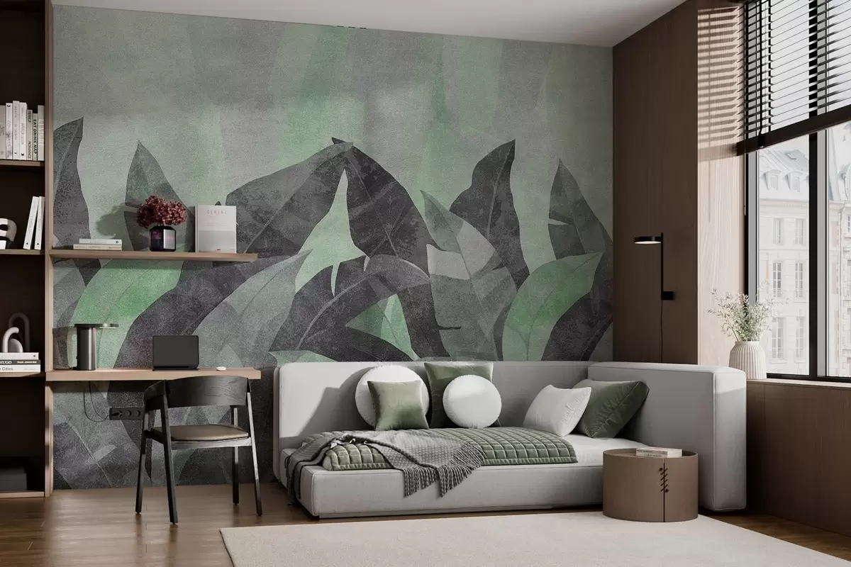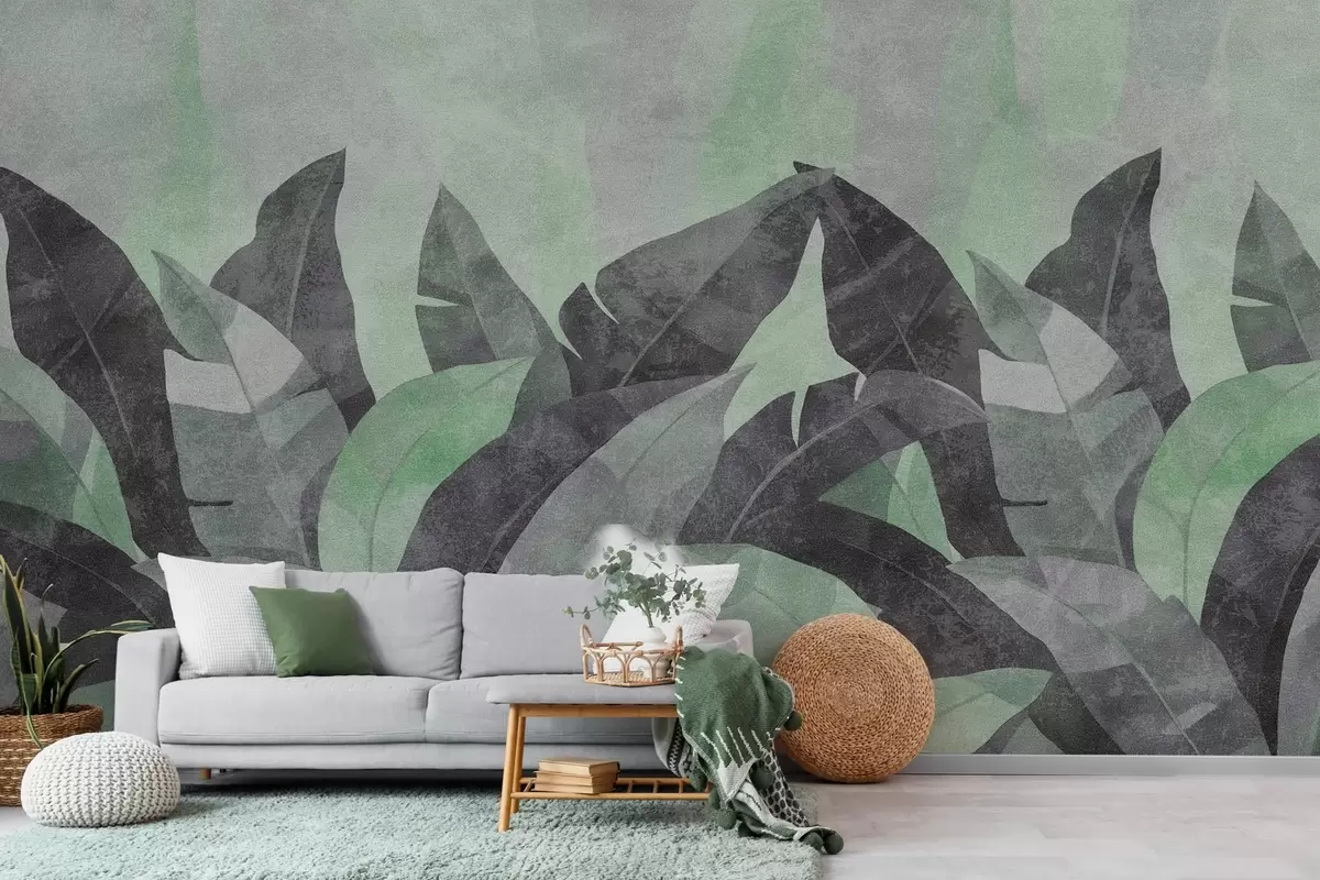 Fototapet strukturerade bananblad i nyanser av grönt och grått Nr. w04285v1