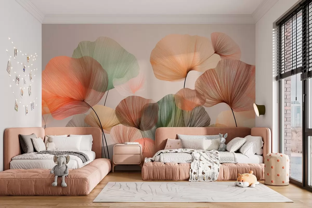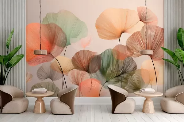 Fototapet flerfärgade ginkgoblad med vener Nr. w04305
