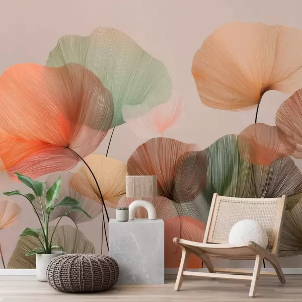 Fototapet flerfärgade ginkgoblad med vener Nr. w04305