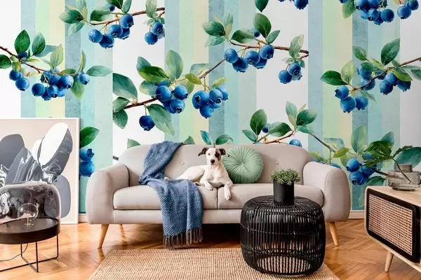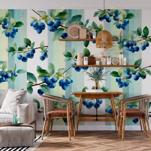 Fototapet blåbärskluster på en randig bakgrund Nr. w04307