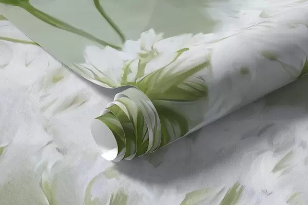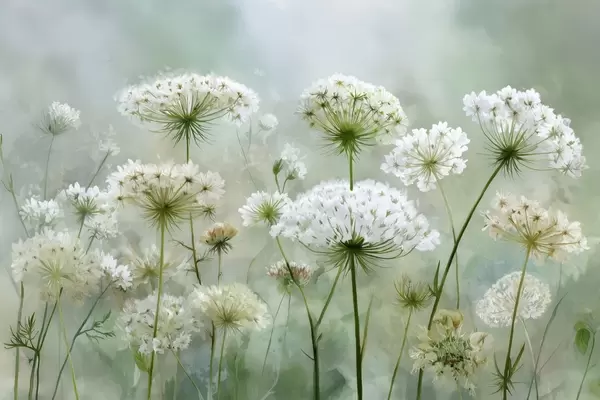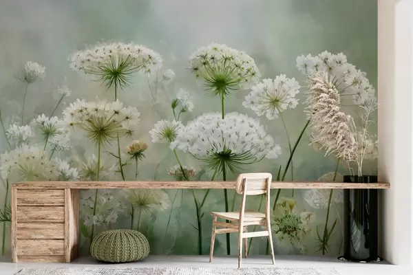 Fototapet skira vita vildblommor Queen Anne, i en pittoresk stil, gröna toner Nr. w04313