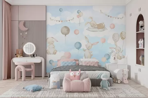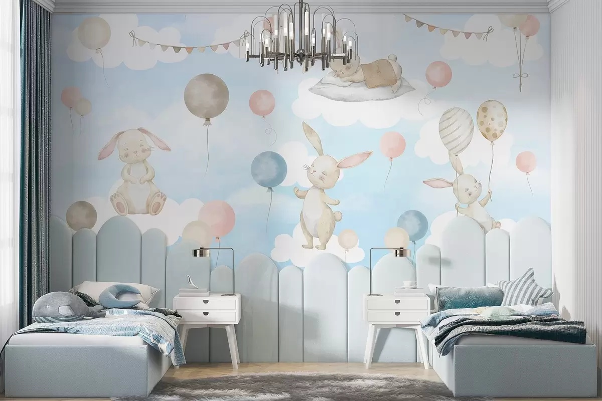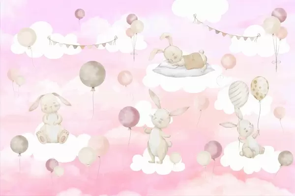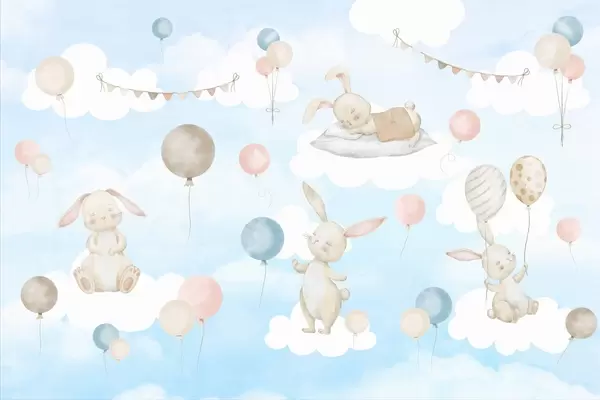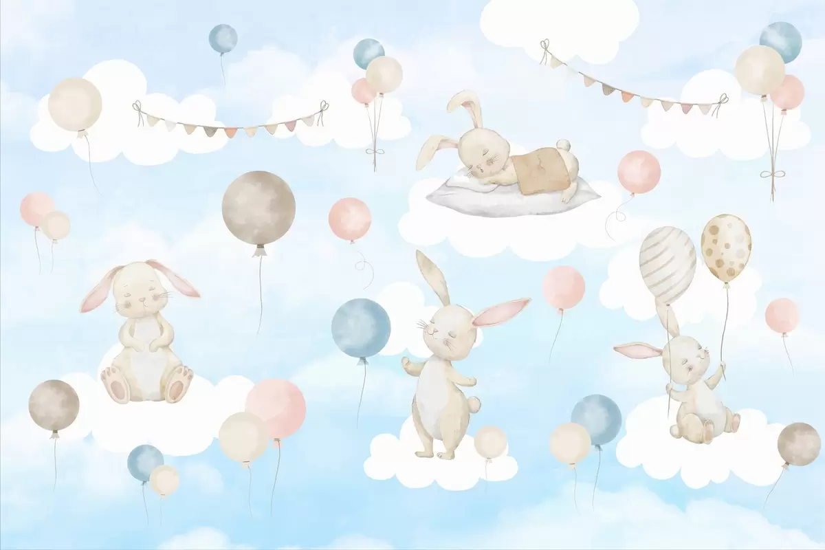Fototapet Kaniner med ballonger på moln Nr. w04337