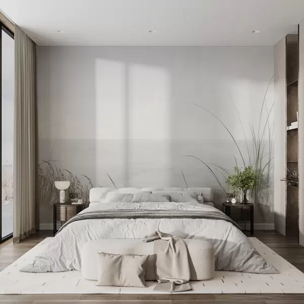 Fototapet Dimmig strand med skira gräs i förgrunden Nr. w04339