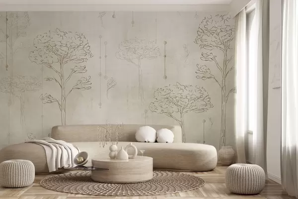 Fototapet Linjära silhuetter av träd i minimalistisk stil Nr. w04403