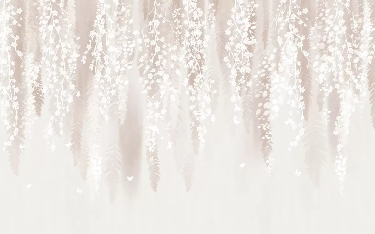 Fototapet Ljusa grenar med vita blommor på en mild bakgrund Nr. w04417