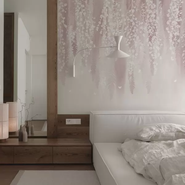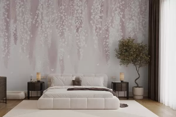 Fototapet Rosa version av grenar med vita blommor Nr. w04417v1
