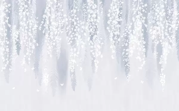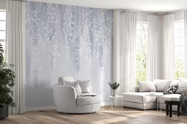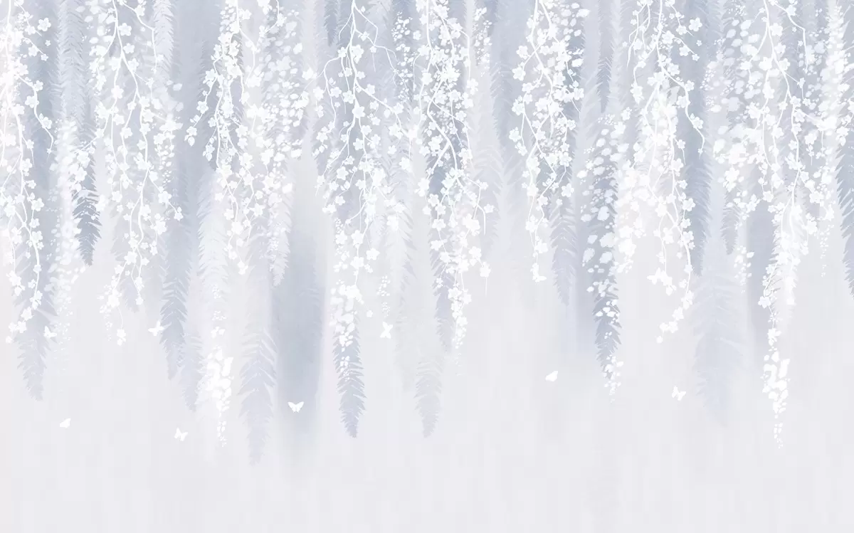 Fototapet Cool blå version av grenar med vita blommor Nr. w04417v2