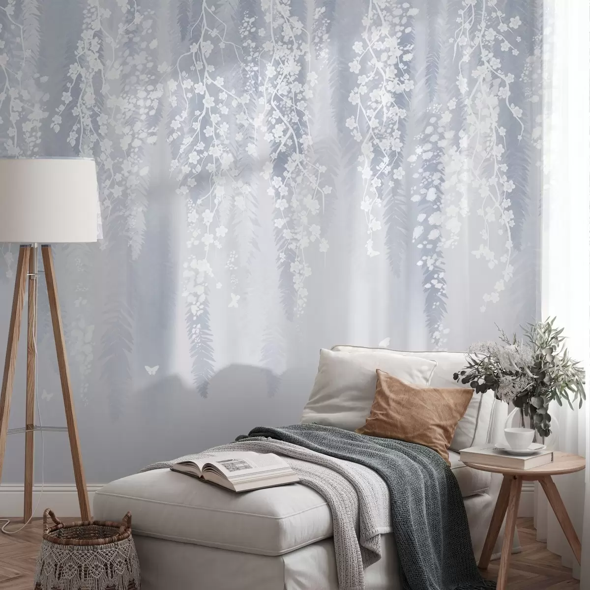 Fototapet Cool blå version av grenar med vita blommor Nr. w04417v2
