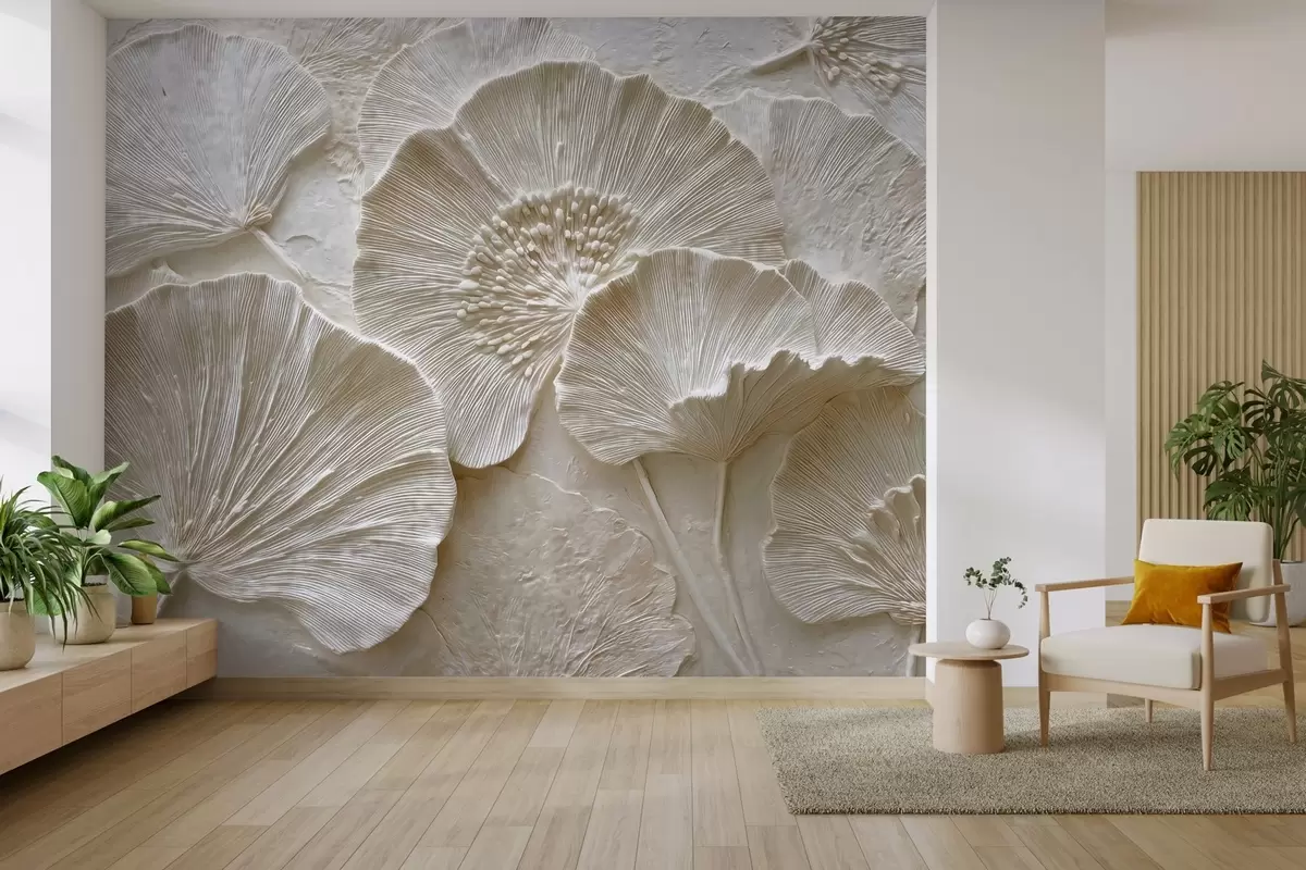 Fototapet Voluminösa ginkgoblad i en lätt präglad stil Nr. w04444