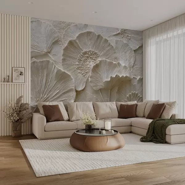 Fototapet Voluminösa ginkgoblad i en lätt präglad stil Nr. w04444