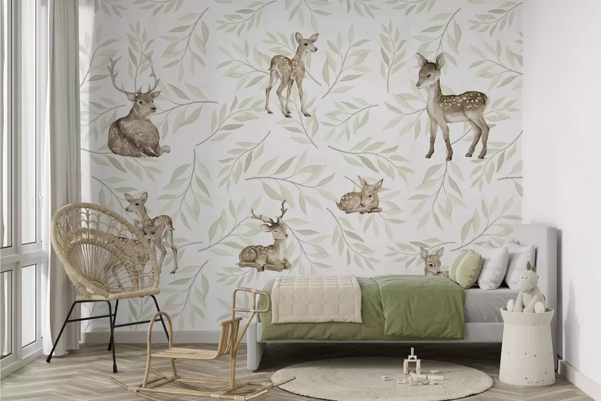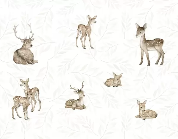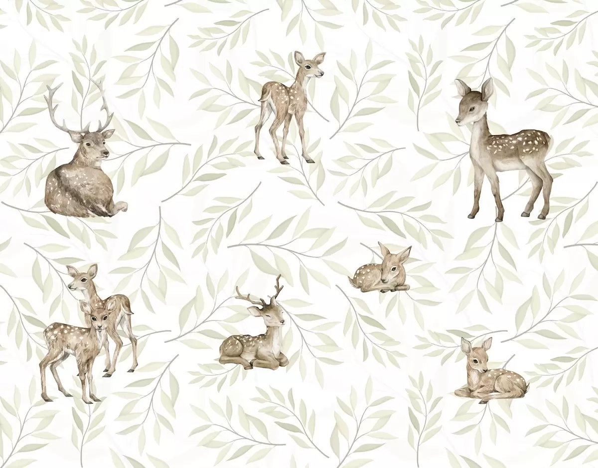Fototapet Fawns bland grönaktiga blad på en vit bakgrund Nr. w04461v1
