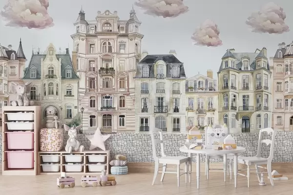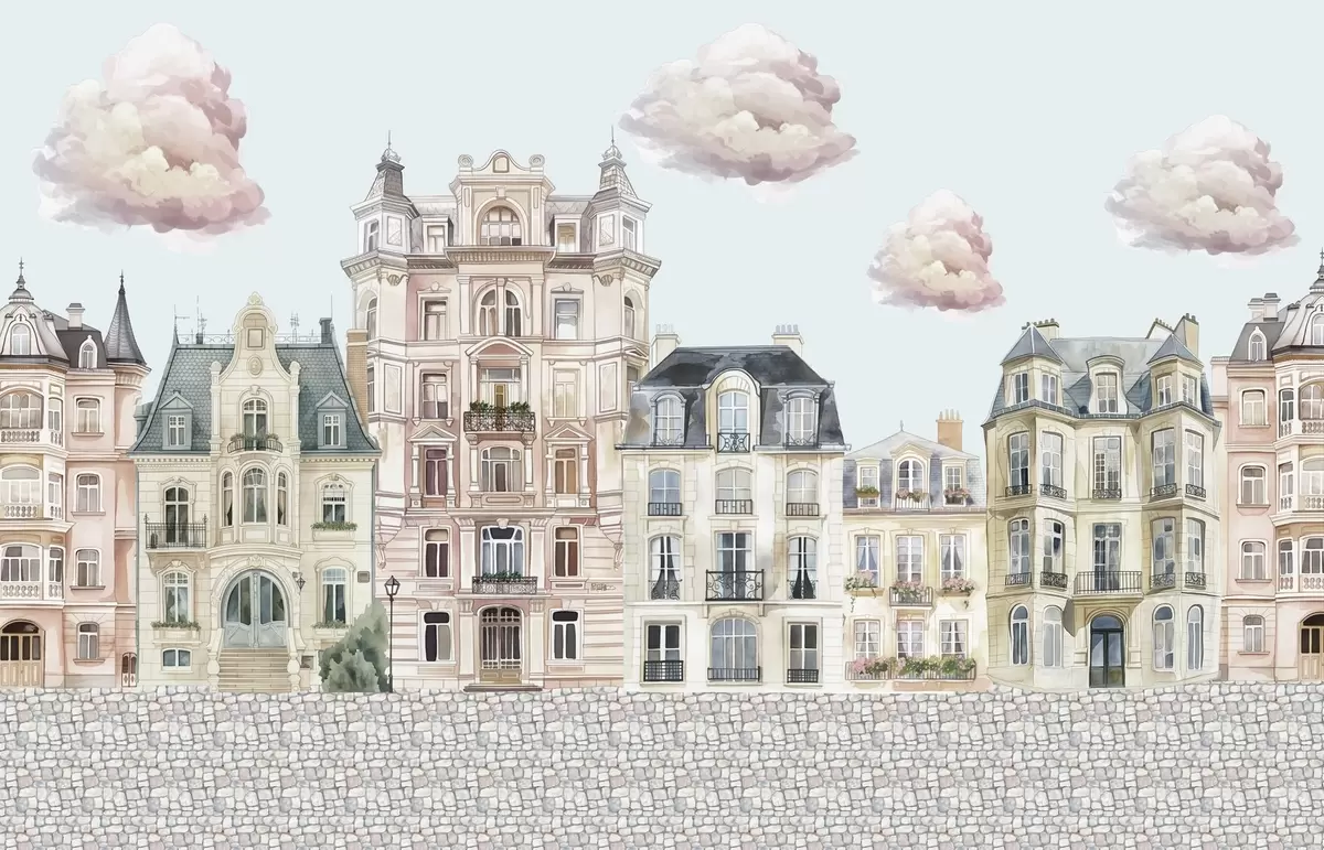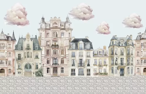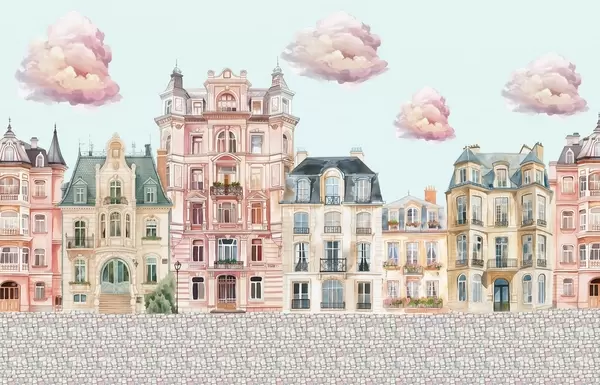 Fototapet Färgglada hus, moln Nr. w04474v1