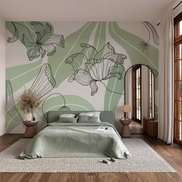 Fototapet abstrakta blad och blommor i gröna toner Nr. w04499v1