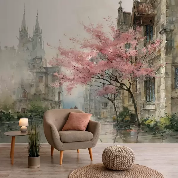 Fototapet akvarellliknande stadsbild Nr. w04500