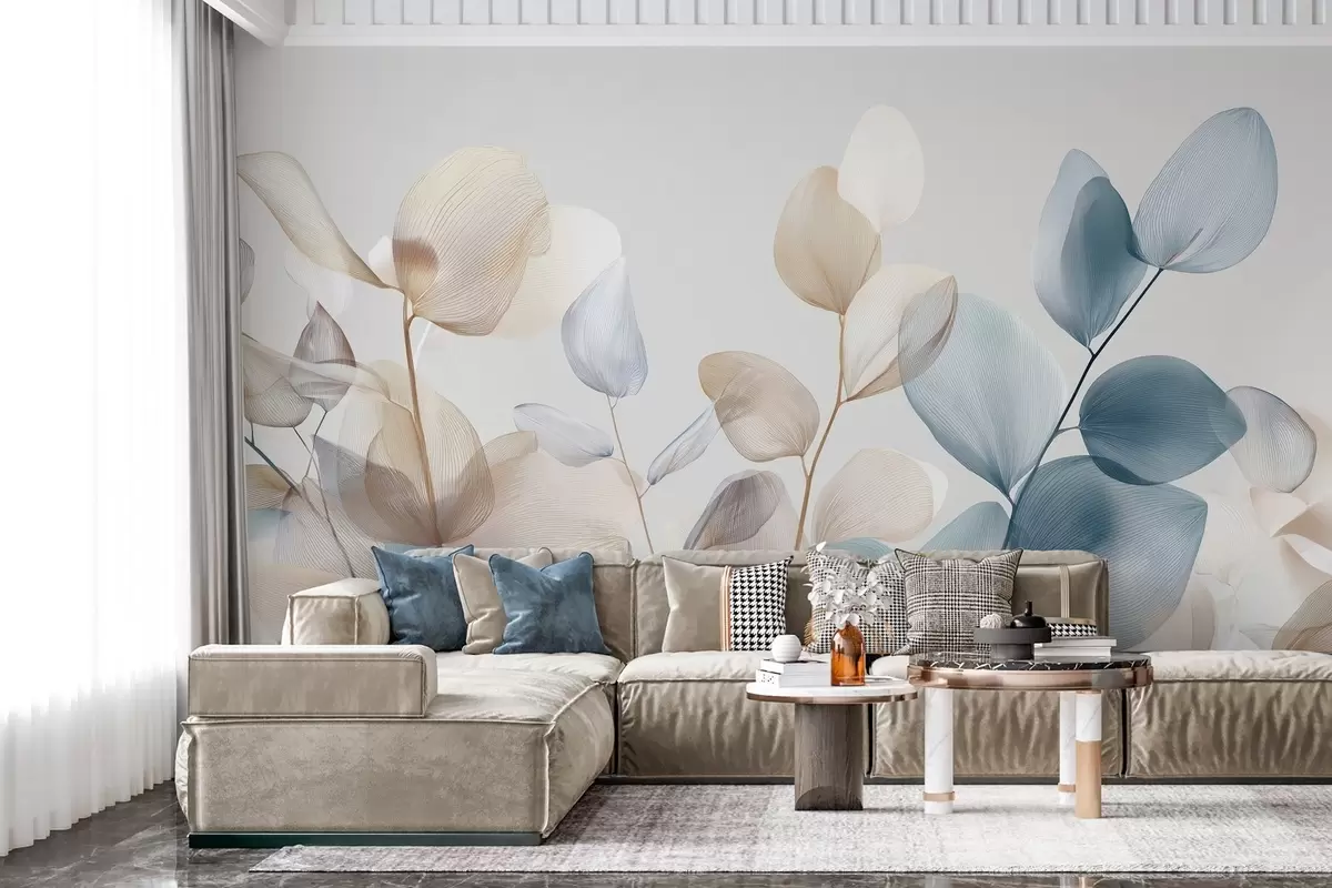 Fototapet eleganta eukalyptusblad med ådror Nr. w04503