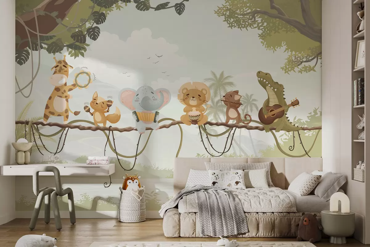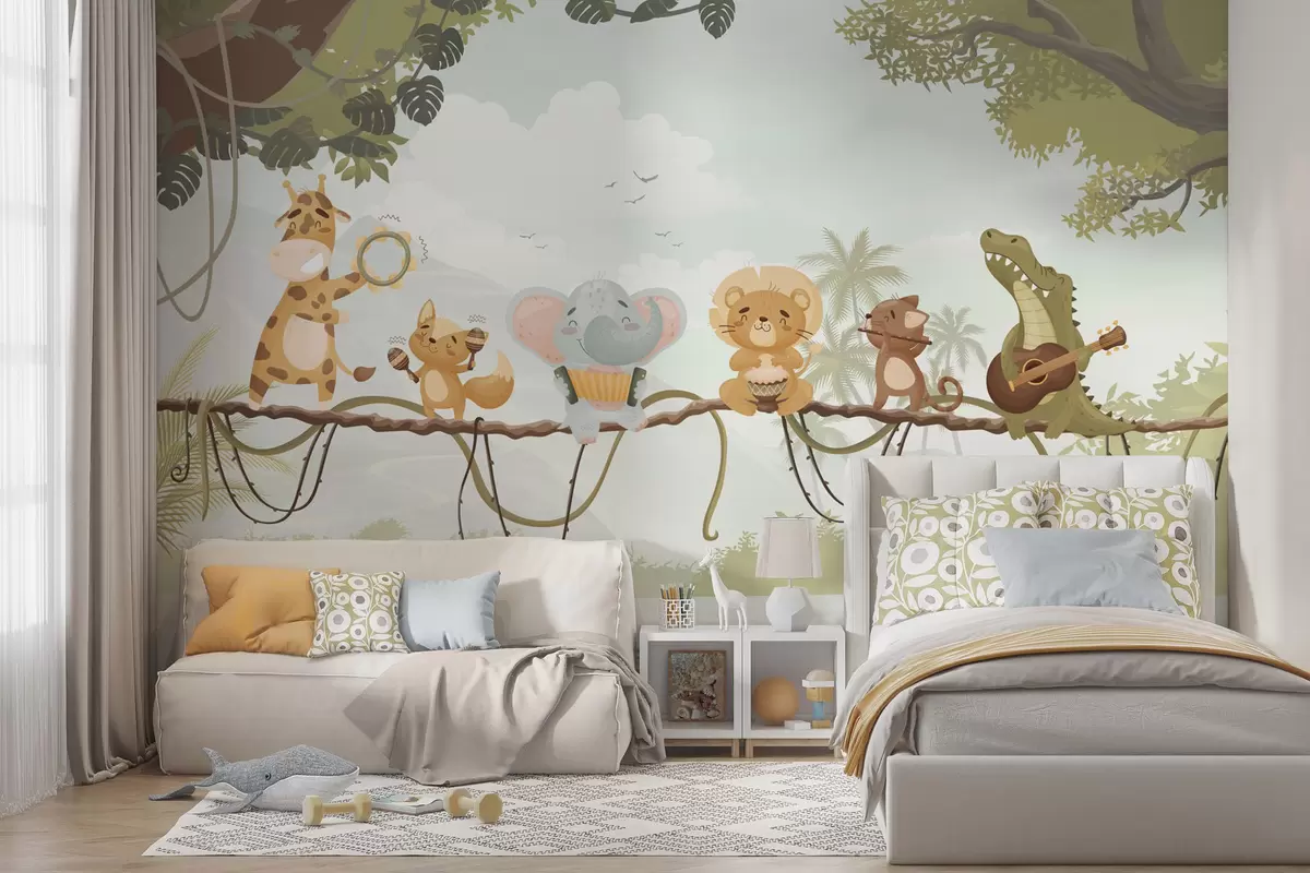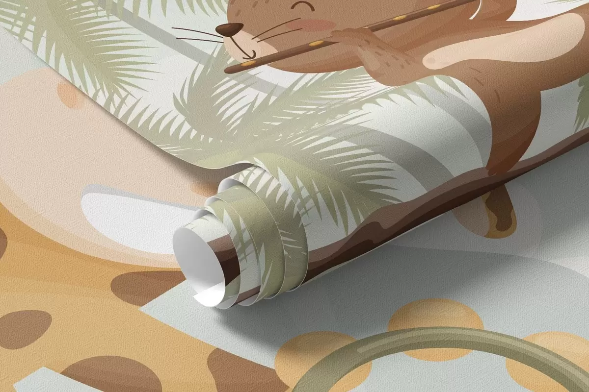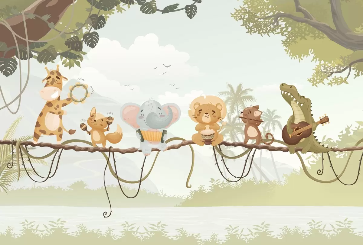 Fototapet Djur med musikinstrument mot en tropisk bakgrund Nr. w04505v1