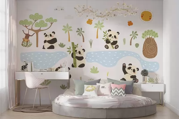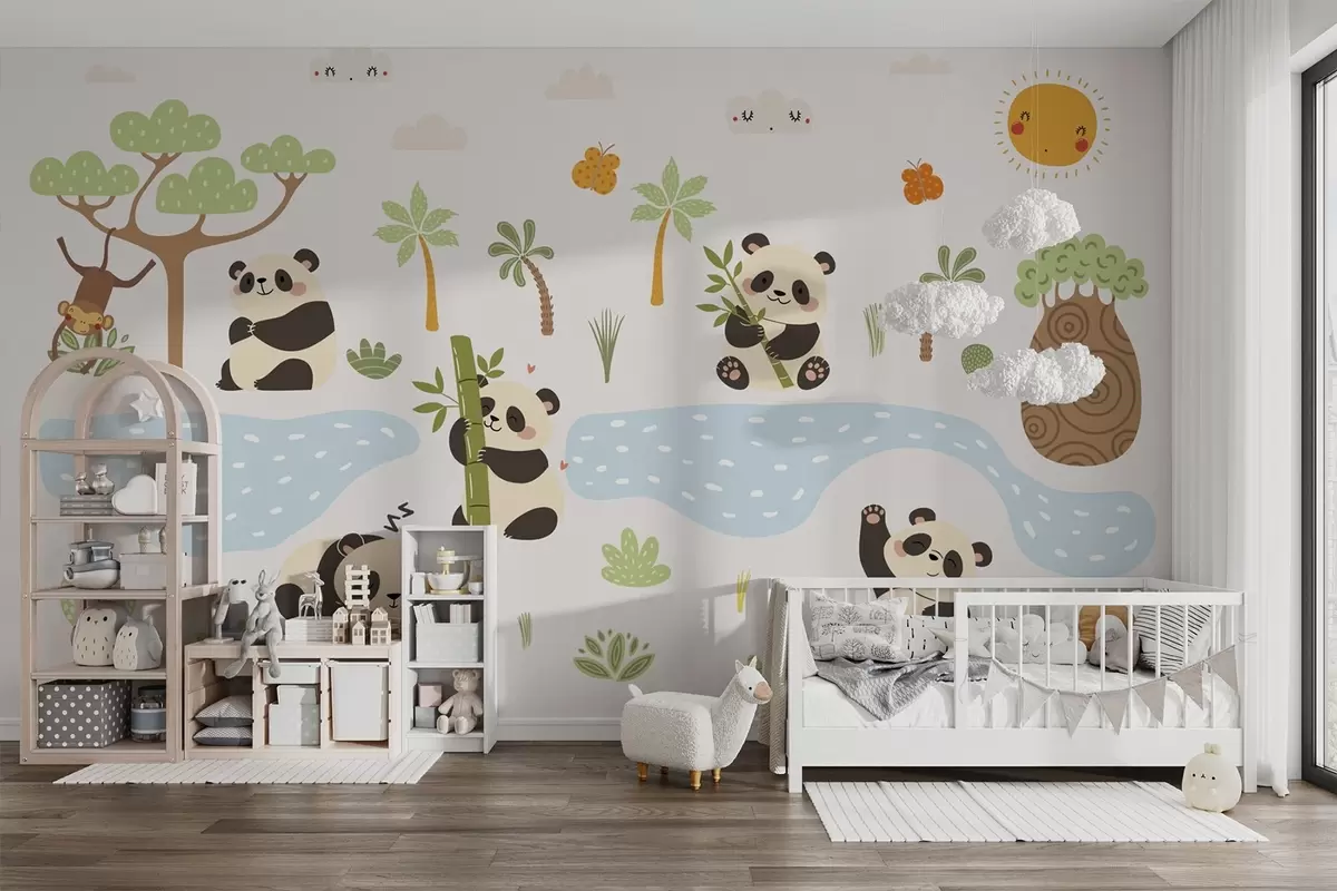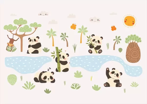 Fototapet Glada pandor vid floden Nr. w04541