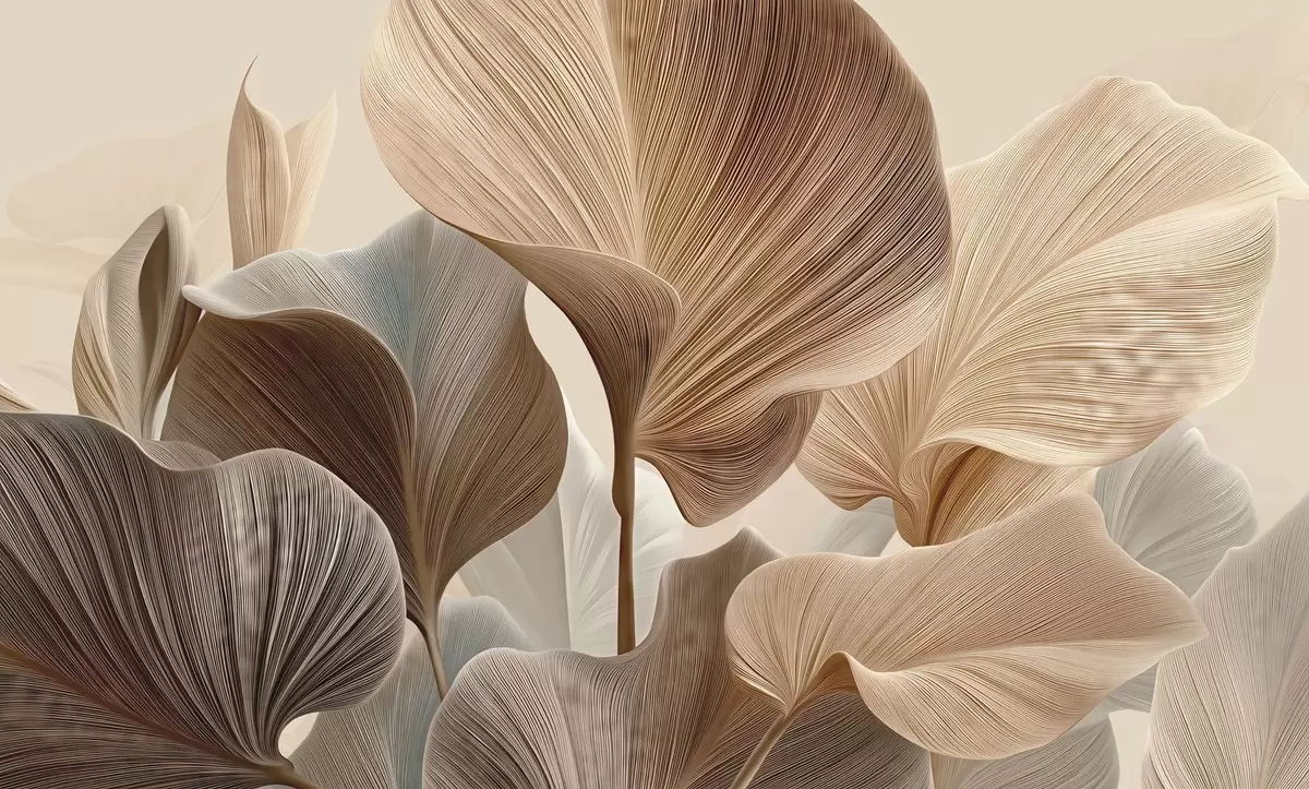 Fototapet Eleganta beige blad med fin linjär struktur Nr. w04549