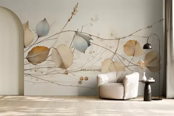 Fototapet Delikata grenar med blad i beige toner Nr. w04579