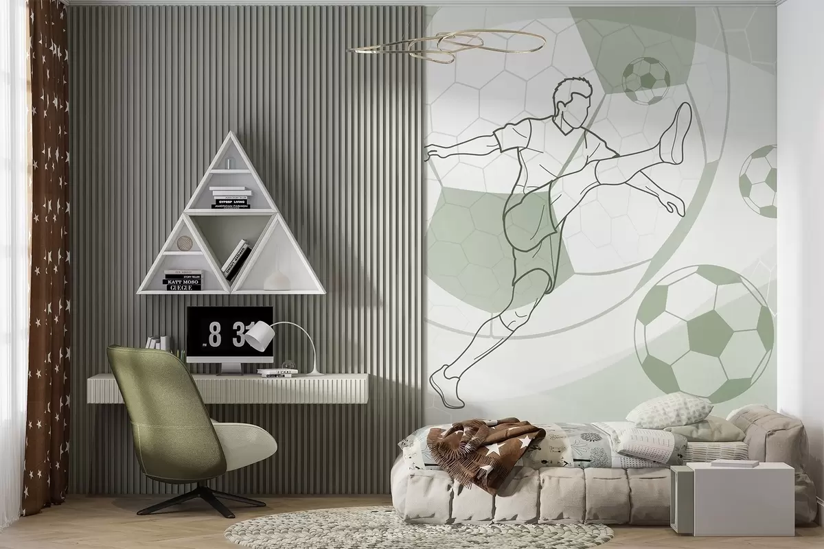 Fototapet Fotbollsspelare och bollar Nr. w04601v2