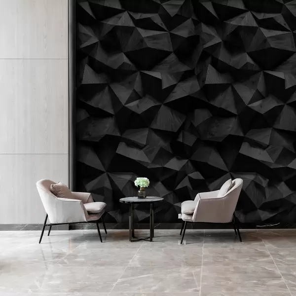 Fototapet imitation av en kantig reliefvägg av mörkt trä Nr. w04632v1