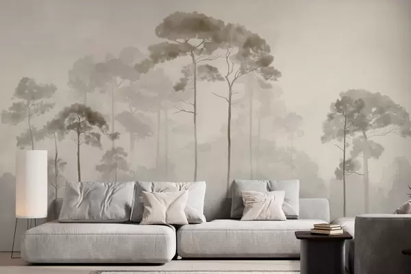 Fototapet ljusa silhuetter av tallar i akvarellstil Nr. w04634