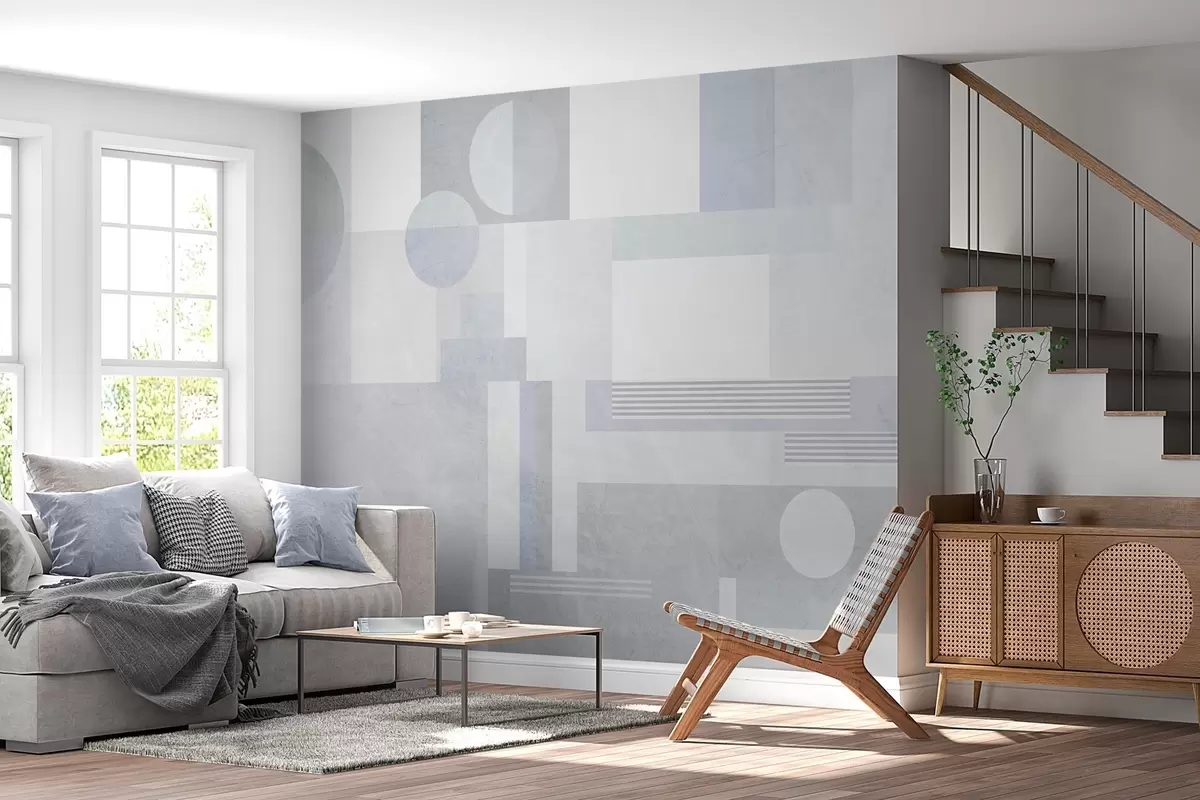 Fototapet abstrakt geometri i gråblå toner Nr. w04635v2