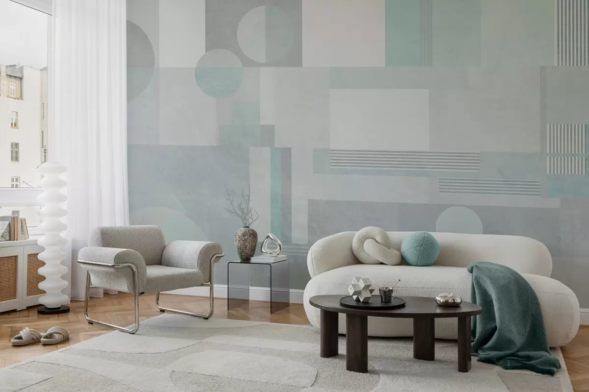 Fototapet abstrakt geometri i grågröna toner Nr. w04635v3