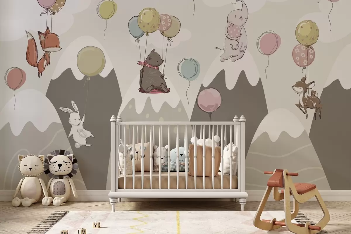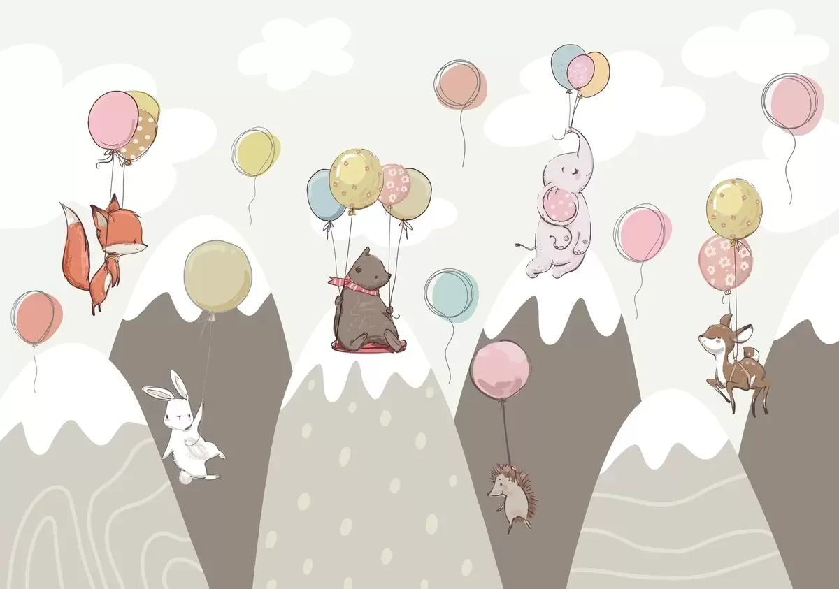Fototapet Barnens skandinaviska berg med djur Nr. w04651
