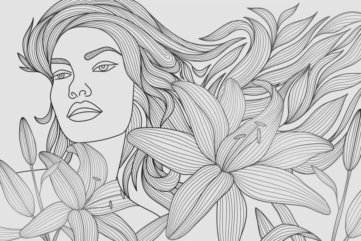 Fototapet Porträtt av en flicka bland liljor Nr. w04689