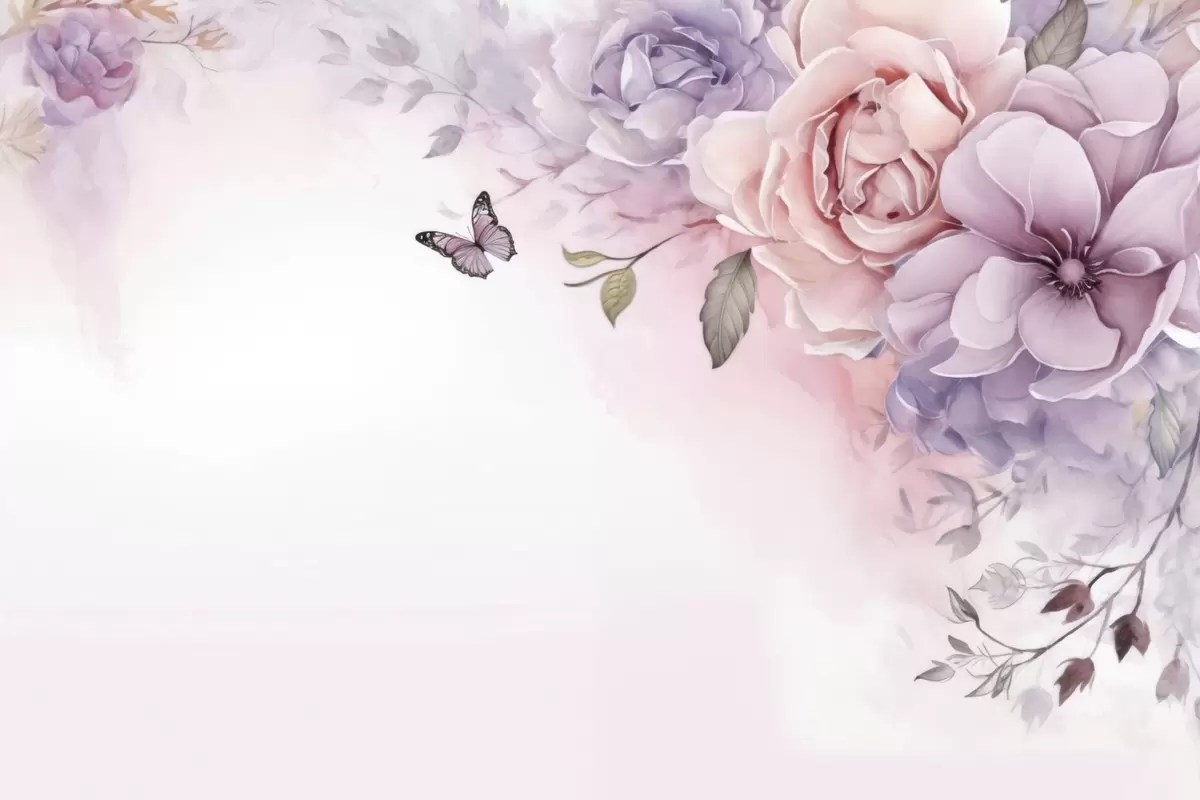 Fototapet Delikata rosa och lila blommor med en fjäril Nr. w04711