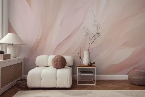 Fototapet Abstrakta mjuka penseldrag i pastellrosa och persikofärgade toner w04731