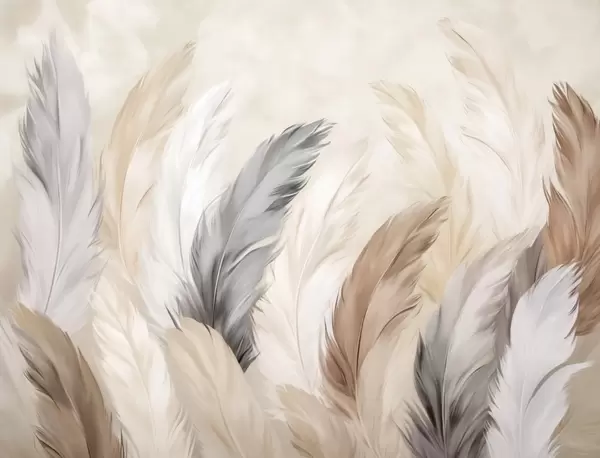Fototapet Mjuka, fluffiga fjädrar i en varm, neutral färgskala Nr. w04736