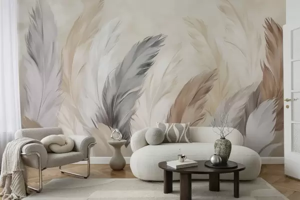 Fototapet Mjuka, fluffiga fjädrar i en varm, neutral färgskala Nr. w04736