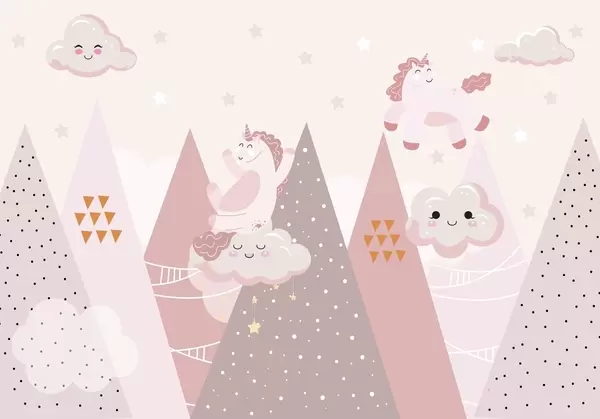 Fototapet Pony i bergen med moln Nr. w04741
