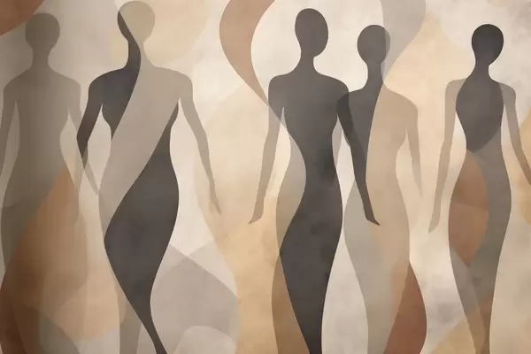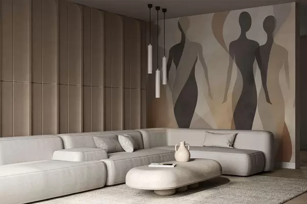 Fototapet Silhuettfigurer och mjuka vågor i varma beige-grå toner Nr. w04787