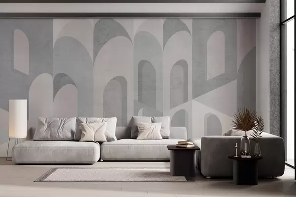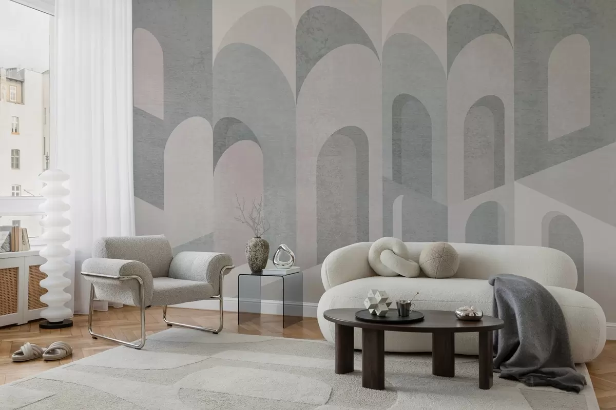 Fototapet urbana metamorfoser av bågen i pulvergrå toner Nr. w04812