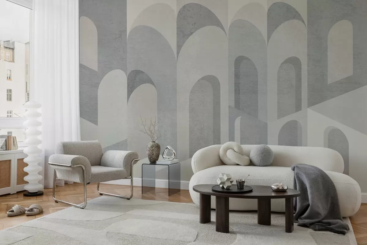 Fototapet urbana metamorfoser av bågen i grå och svala beige toner Nr. w04812v1