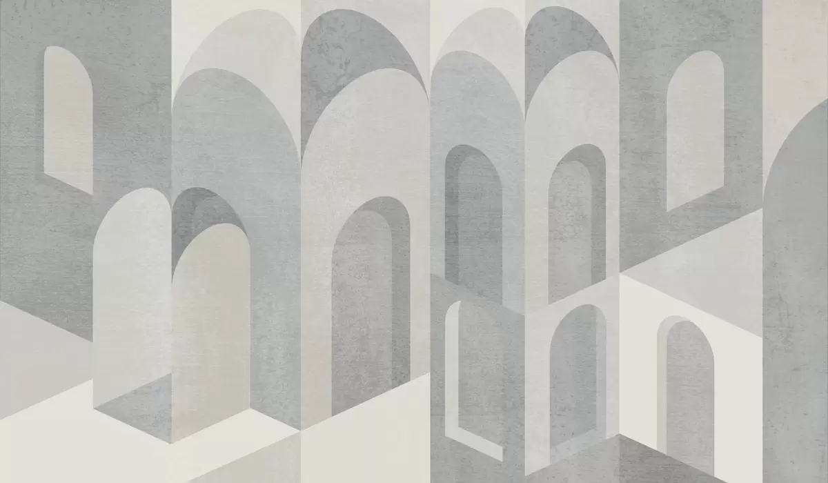 Fototapet urbana metamorfoser av bågen i grå och svala beige toner Nr. w04812v1