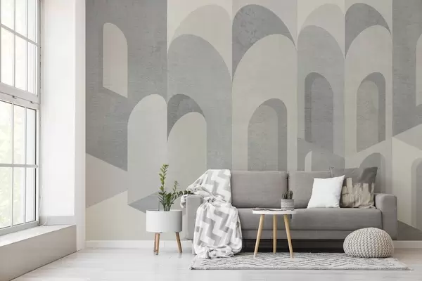 Fototapet urbana metamorfoser av bågen i grå och svala beige toner Nr. w04812v1