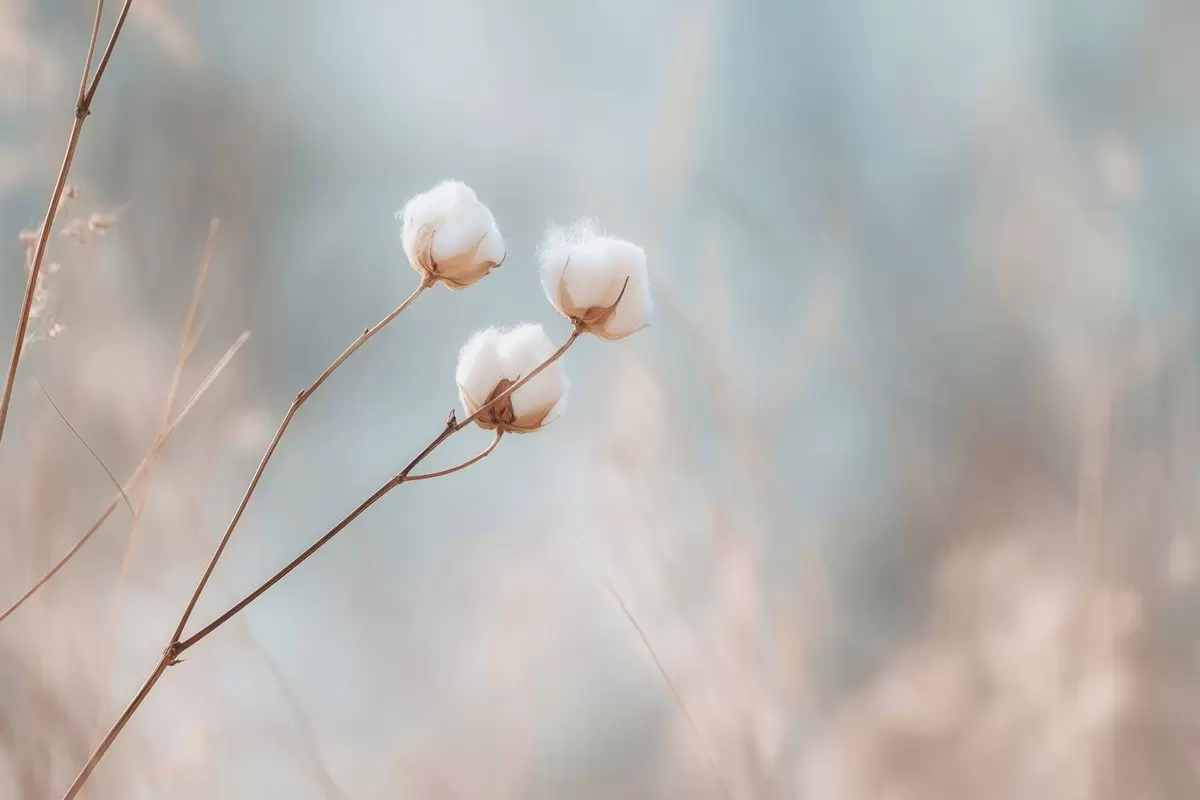 Fototapet tre bomullsblommor på en suddig bakgrund Nr. w04820