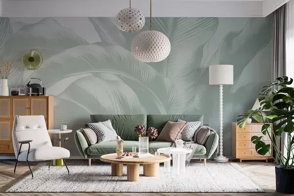 Fototapet Långa blad, bananblad med sliten effekt Nr. w04827v3
