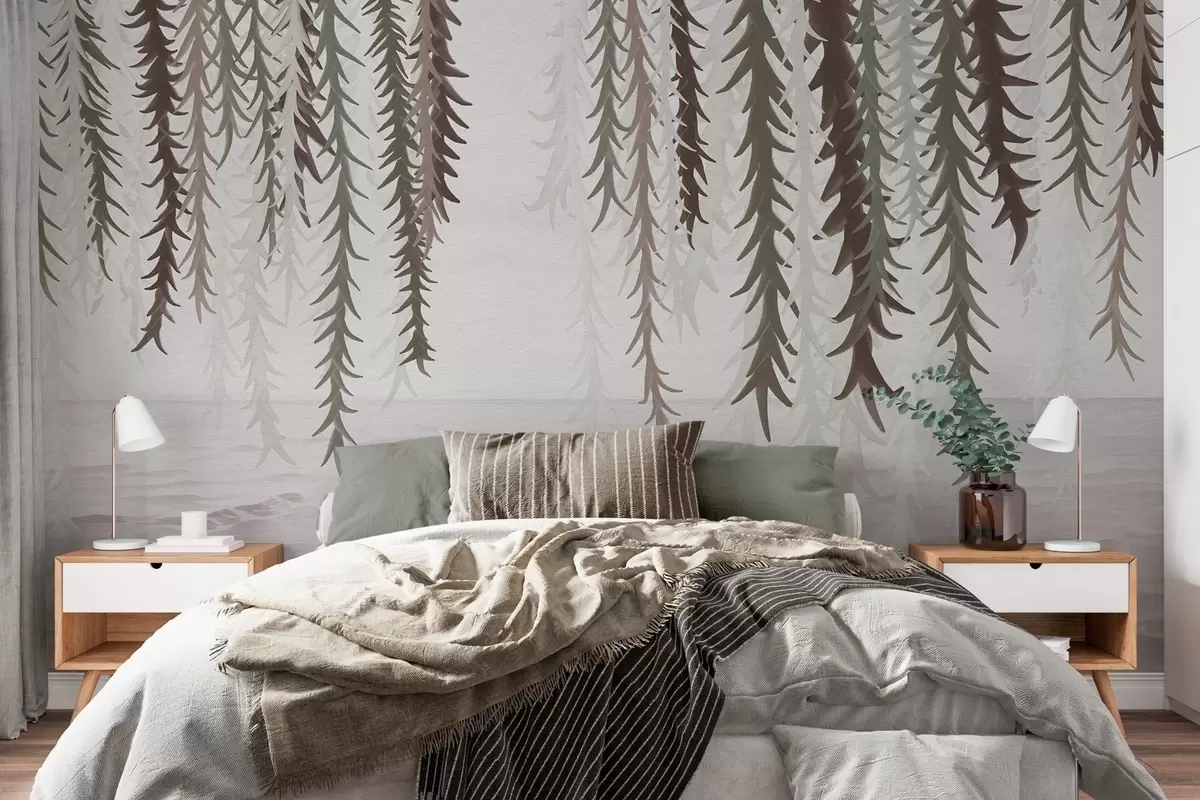 Fototapet Delikata vinstockar som hänger över vatten i akvarellstil Nr. w04830v2