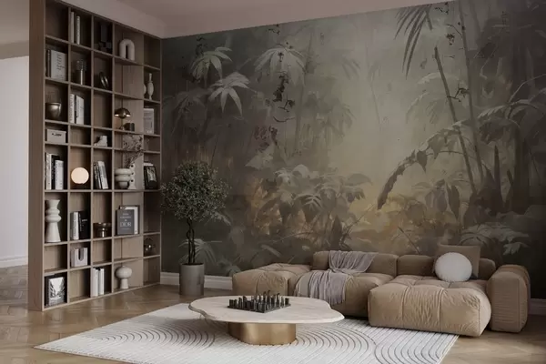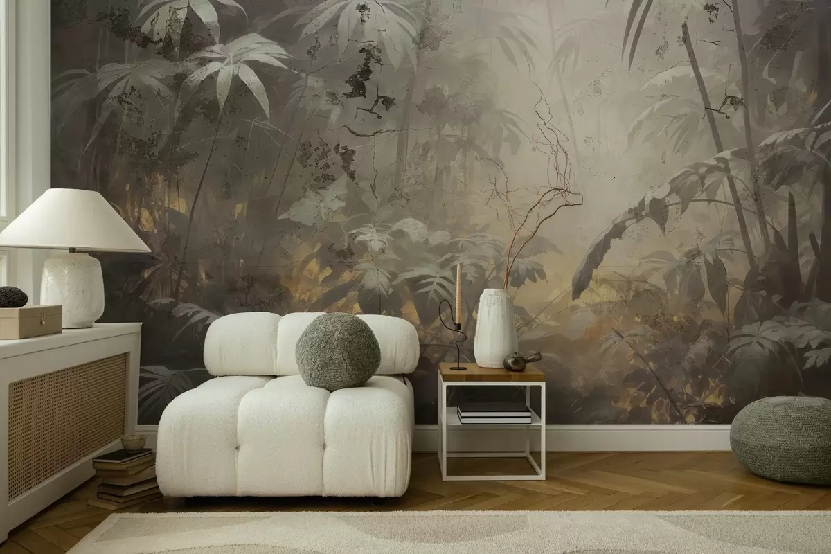 Fototapet Målad djungel bakom en grungig betongvägg Nr. w04833