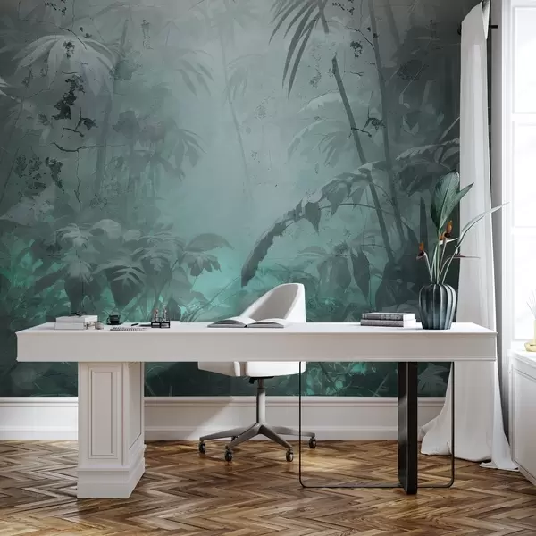 Fototapet Målad djungel bakom en grungig betongvägg Nr. w04833v1