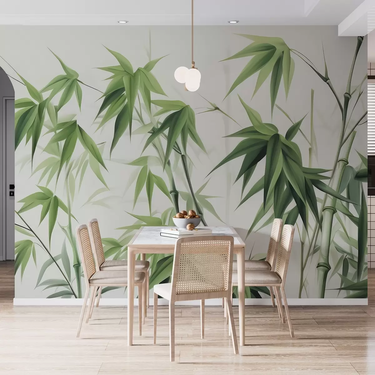Fototapet Bambu på en ljus akvarellbakgrund Nr. w04834