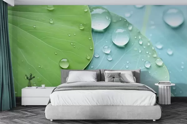 Fototapet Vattendroppar på blad makro akvarell Nr. w04838
